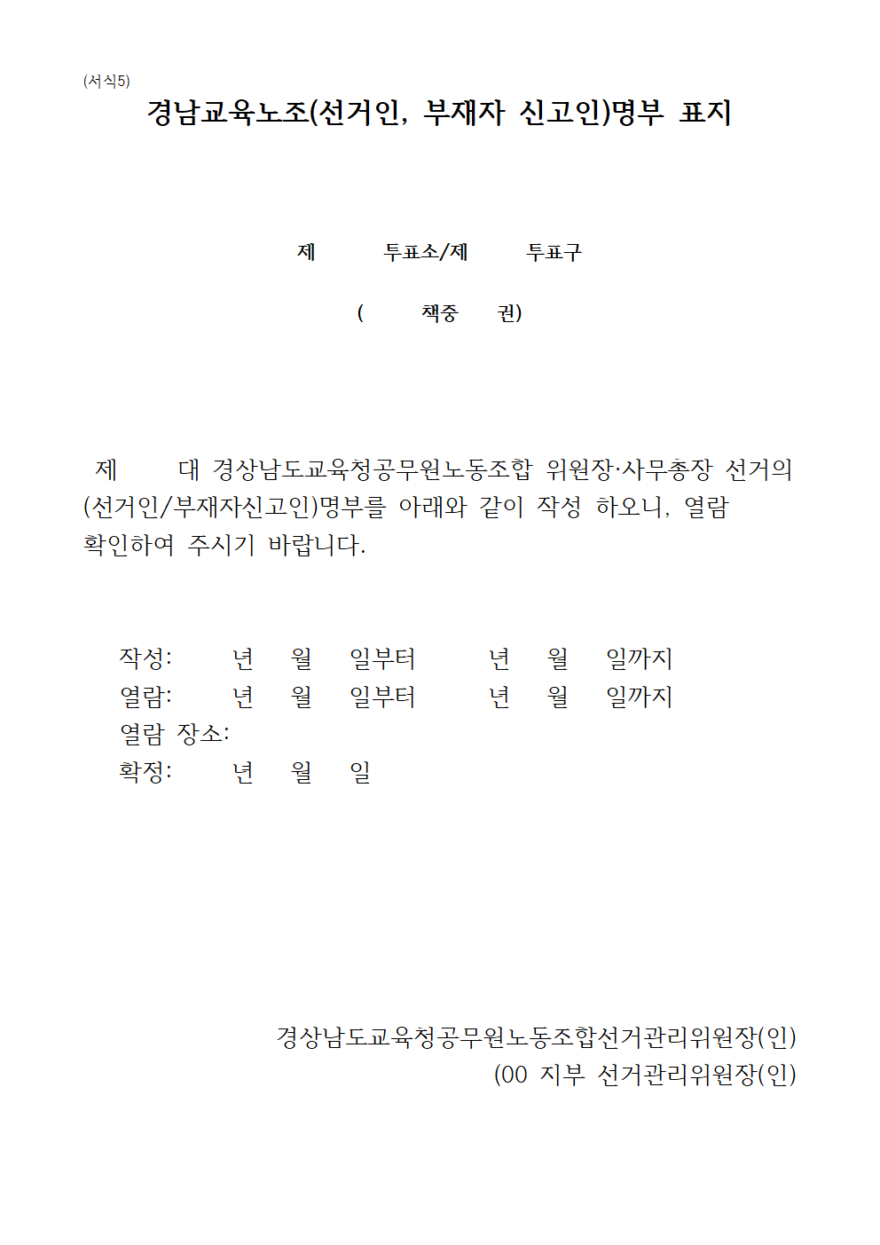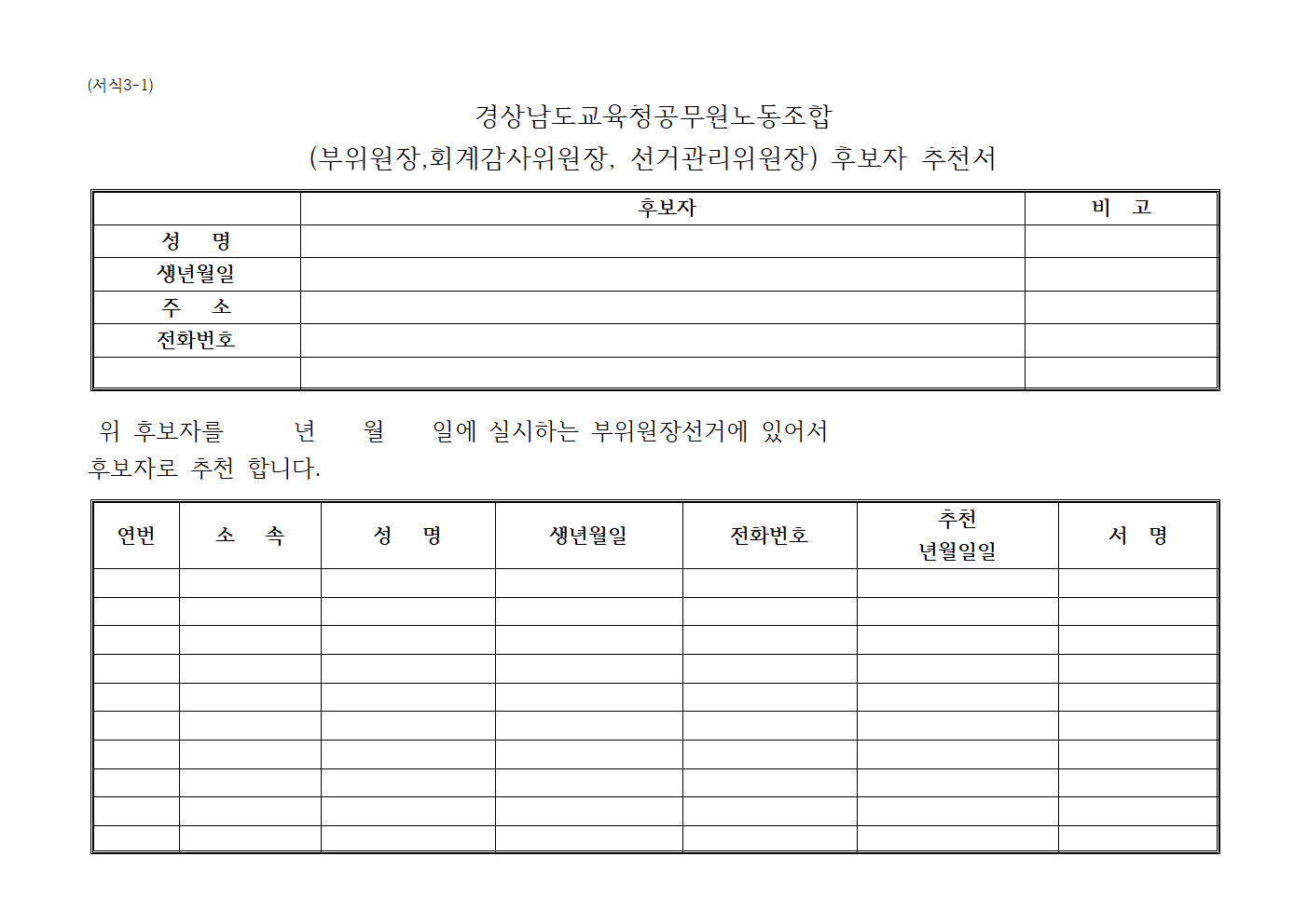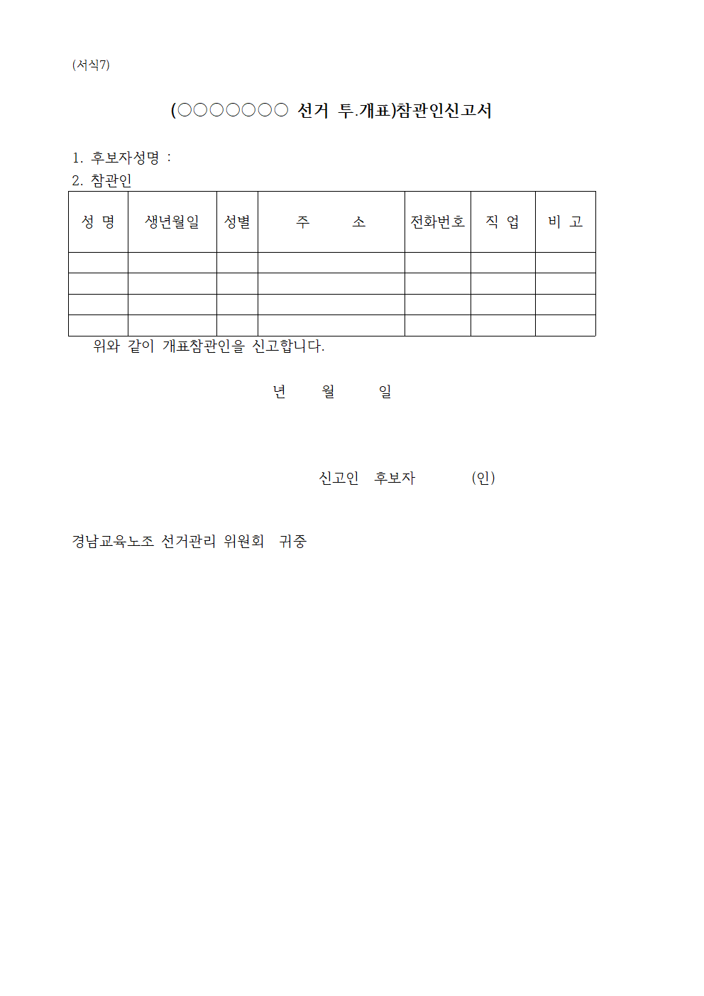 ① 본 선거관리위원회는 규약 제46조에 의하여 경상남도교육청공무원노동조합 선거관리위원회를 포함한 7인 이내로 구성한다.